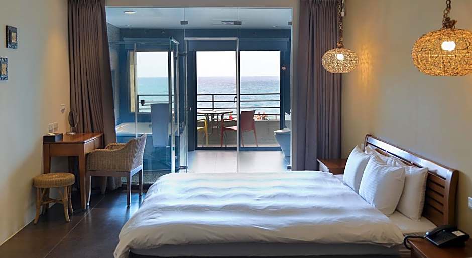 Offering a balcony and sea views, room features air conditioning, a king-size bed, flat-screen TV, fridge, an electric kettle and private bathroom with a bathtub and shower facilities.